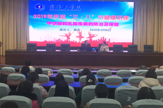 校女工委举办了庆“三八”健康知识讲座——甲状腺和乳腺疾病的防治及保健。活动特邀连云港市第一人民医院甲乳外科主任、乳腺疾病(癌)防治专家周军教授主讲。我校近两百名女教工认真聆听了讲座,讲座由校女工委副主任、基建处副处长龚清萍主持。讲座中,周军主要针对甲状腺和乳腺疾病的防治知识进行了宣讲,并与大家进行了面对面的交流,解答了大家的各种疑问,对我校教职工正确认识甲状腺和乳腺疾病的防治及保健提供了有针对性的指导,帮助大家更好地预防相关疾病的发生。
