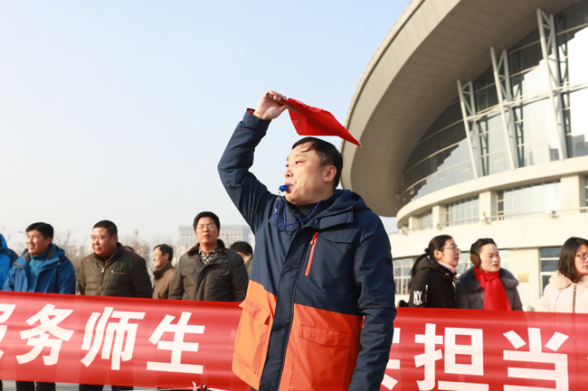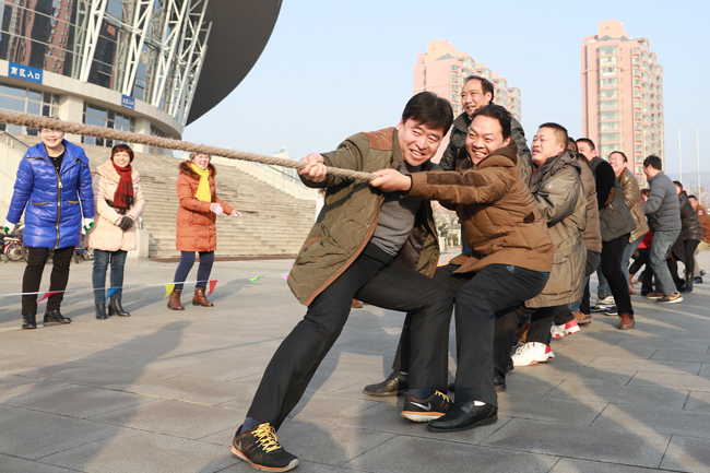 12月30日下午,机关工会在校体育馆举办了“敬业乐群服务师生,务实担当创建‘海大’”为主题的喜迎2017新年趣味运动会,展示风采、喜迎新年、增进友谊、愉悦身心。校长史金飞亲临现场,并担任拔河比赛的裁判,部分校领导观看了比赛。