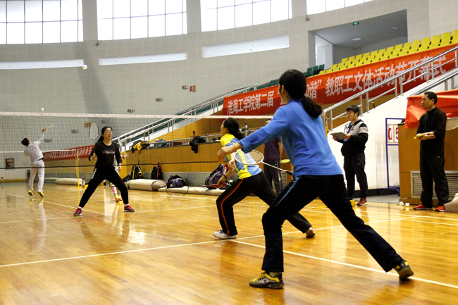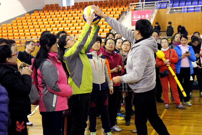 2017年淮海工学院教职工羽毛球团体争先赛和市气排球队员表演赛为本次文体节开幕式助力争彩。我市气排球队员曾多次获得全国气排球比赛冠军,他们作战经验丰富,特别是拦网意识强、进攻谋略深,给在场观看比赛的老师带来一场别开生面的排球盛宴。