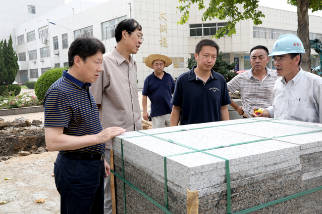 8月5日上午,校领导赵炳起、宁晓明、杜军、许兴友在办公室、工会等部门负责同志的陪同下,分别到通灌校区、宋跳校区以及苍梧校区视察校园暑期工程进展情况,慰问奋战在一线工作岗位的干部职工,并为他们送去矿泉水、水果等防暑降温物品。