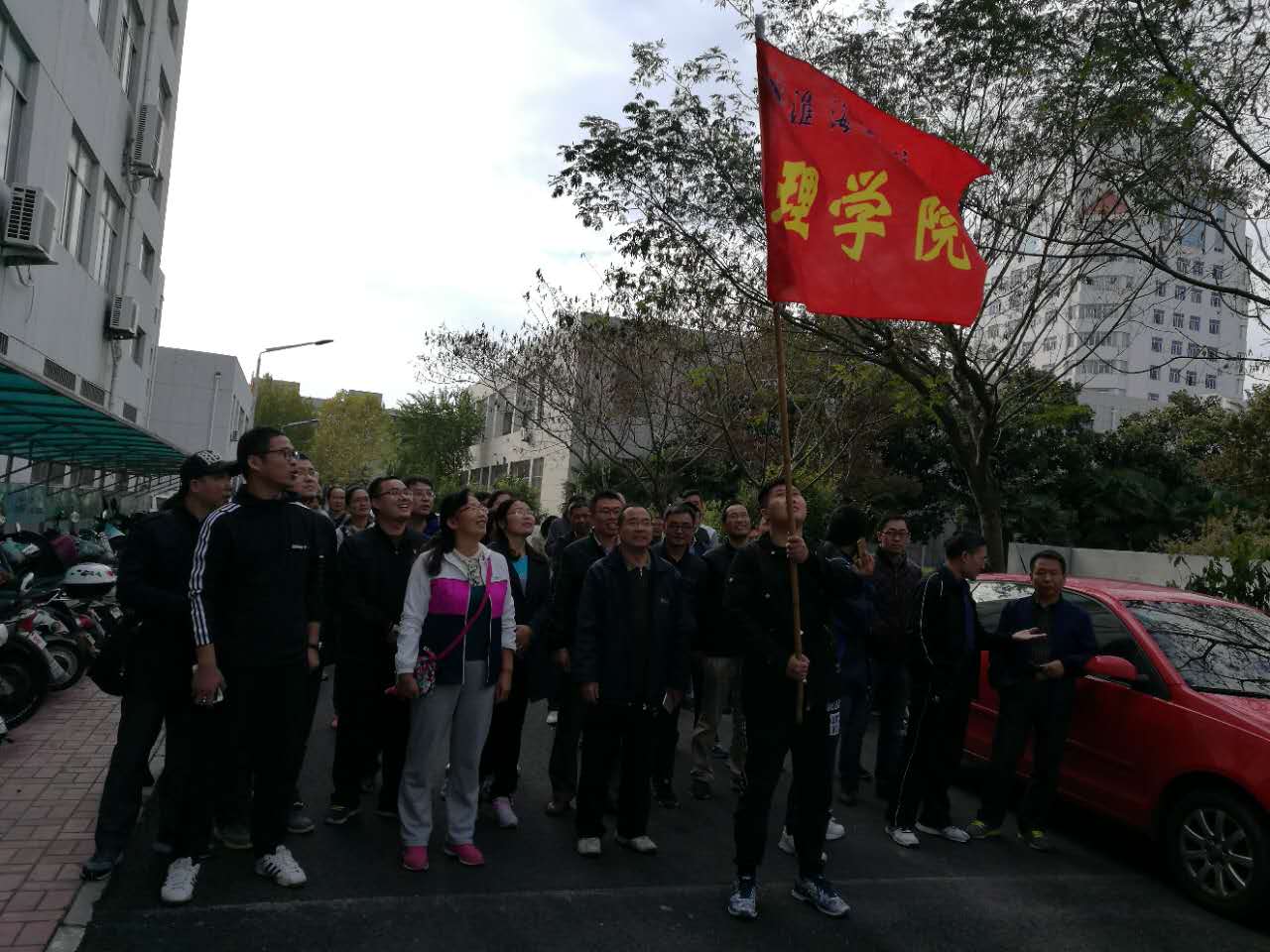 为庆祝十九大胜利闭幕,展现理学院教职工新面貌,10月25日下午,理学院工会组织学院全体教职工从淮海工学院苍梧校区到星海湖的健步走活动。