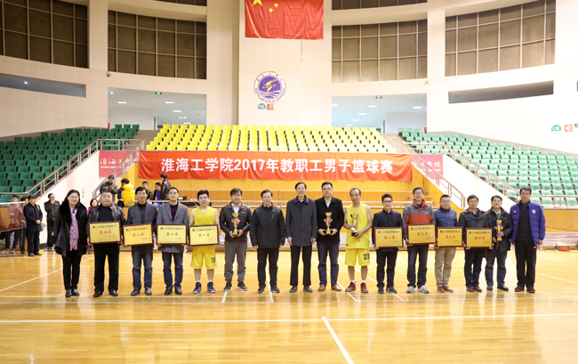 11月24日下午,由校工会、体育学院联合举办的2017年教工男子篮球比赛在苍梧校区体育馆举行三、四名和冠亚军决赛,赛后进行了颁奖仪式。校党委副书记、纪委书记史顺良,副校长杜军以及主办单位领导为获奖单位颁奖并观看了甲组冠亚军决赛。