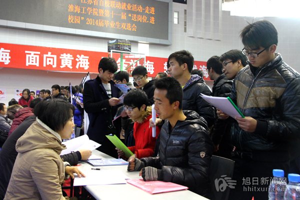 11月30日上午,苍梧校区体育馆内人声鼎沸,来往人群摩肩接踵。江苏省百校联动就业活动走进淮海工学院暨第十一届“送岗位·进校园”2014届毕业生双选会在这里隆重举行。来自省内外203家企业,提供了6400多岗位,校内外5000多名应届毕业生进场应聘。