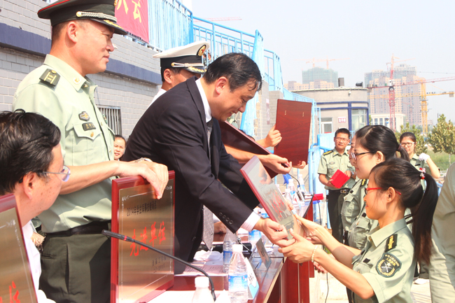 表演结束后,党委副书记、副校长、军训团政委宁晓明宣读了《淮海工学院2014年学生军训表彰决定》。军训中表现突出的5个先进集体、5名优秀指导员、10名优秀教官,以及233名优秀学员受到表彰。部队首长和校领导分别为获奖集体和个人代表颁奖。