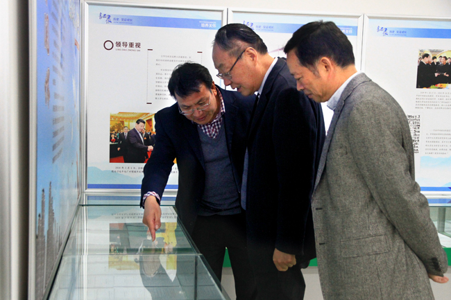 《大学生村官报》副总编辑王书明在党委副书记、纪委书记史顺良的陪同下在大学生村官史料馆参观