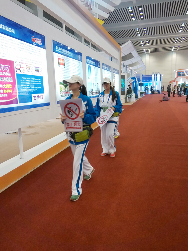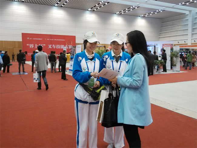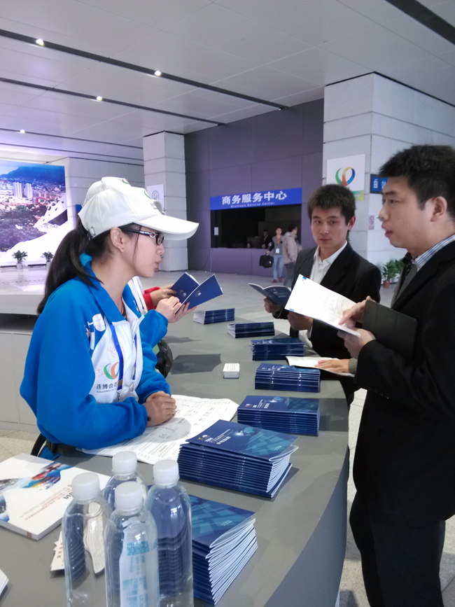三天里,志愿者们不仅接待了全国各地的客商,还有来自德国、意大利、韩国、日本等国外客商。为远道而的来宾们解答各种疑惑,为受邀的参观者介绍及引导,“小海燕”们乐此不疲。他们直接面对每一个来宾、每一位观众,他们的一举一动、一言一行,看上去很小,但意义很大。10月21日,一名日本参展商不愿意配合“小海燕”的安检工作,来自外国语学院的志愿者张娟就发挥专业优势,用一口流利的日语为这位客商耐心解释、道明利害,赢得了客商的尊重和信任。