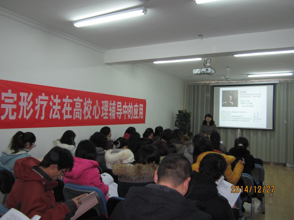 12月27日至12月29日,《完形疗法在高校心理辅导中的应用》培训班在我校举办,我校二级学院党委副书记、心理工作联系人、心理教育与咨询成长小组成员、校内外专兼职咨询师参加了培训班。此外,为发挥我校省级心理示范中心的示范和辐射作用,我校还邀请了连云港市大中专院校咨询师代表参加了培训班。