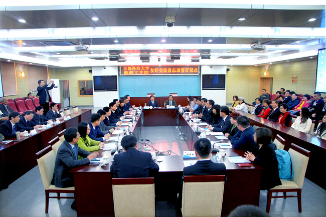 随后,双方就两校专业设置、产学研合作、学生选派等方面进行了深入的交流。最后,两校还举行了合作交流备忘录的签订仪式,宁晓明和郑舜仁分别代表各自学校在协议书上签字。