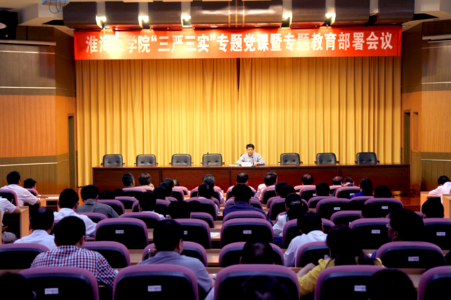 5月27日下午,我校“三严三实”专题党课暨专题教育部署会在讲堂楼报告厅召开。党委书记赵炳起以《自觉践行“三严三实”做群众满意的好干部》为题, 为全校中层以上领导干部上了一堂深刻而又生动的专题党课,并代表学校党委常委会对全校“三严三实”专题教育作动员部署。全体校领导、全体中层干部参加会议并聆听了党课。