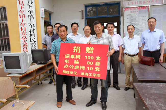 7月7日下午,副校长王洪法在学生处、资产处、团委等部门负责人陪同下,来到灌云县下车镇上车村,参加了淮海工学院在这里开展的捐赠助学物资、关爱留守儿童和举办慰问演出等系列帮扶活动。