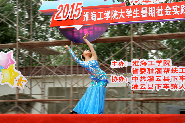 整场表演由艺术团劲舞队带来的劲舞表演拉开帷幕,极具动感的旋律和劲舞队员们热辣的舞姿在演出的开始就带起了青春洋溢的节奏。随后由郭戈老师演唱的《父亲的草原母亲的河》以其浑厚的嗓音和娴熟的演唱技巧获得了在场观众的掌声。由大学生艺术团劲舞队和国标队所带来的舞蹈,展示出了作为现代大学生所具有的青春的朝气与魅力。演出中由灌云县下车镇三位大学生村官所表演的小品《白蛇传》,尤其得到全场观众的称赞,节目由下车镇禁止燃烧秸秆开始,展开了一系列以当地为背景的表演,时不时冒出的灌云方言逗得在场的观众们都忍俊不禁,围绕着当地村民生活的表演获得了观众们的一致好评。