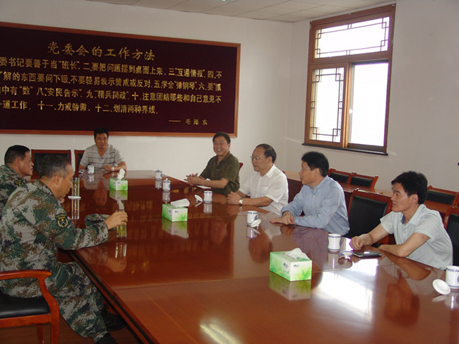 7月24日,在中国人民解放军建军八十八周年前夕,校党委书记赵炳起、副校长王洪法,带领办公室和武装部的负责同志,冒着高温酷暑,专程前往连云港警备区、海防二团等驻连部队,代表全校师生员工看望和慰问了部队官兵。