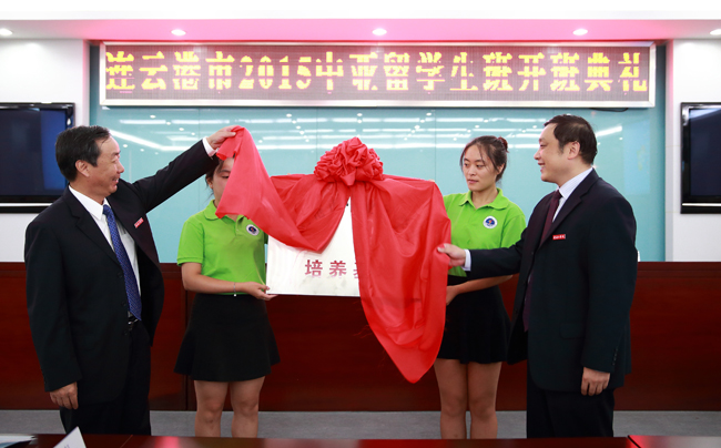 副市长董春科和校长史金飞共同为“连云港市中亚留学生培养基地”揭牌。