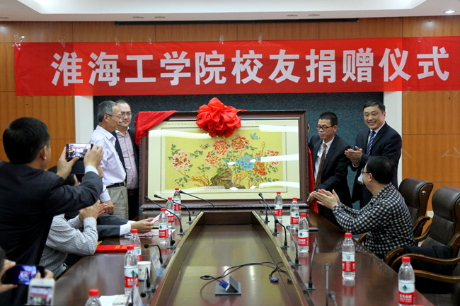 会上,校长史金飞致辞。他代表学校党委、行政及全校师生员工,对校友会和部分校友的捐赠表示诚挚的敬意和由衷的感谢。史金飞说,今年是淮海工学院建校30周年暨办学57周年,这些年来,学校的每一步发展都离不开具有高度社会责任感、心系母校发展的广大校友的支持,各位校友在各自的工作岗位上做出了突出贡献,为学校赢得了荣誉,这是学校最宝贵的资源。史金飞表示,学校将进一步加强人才队伍建设、提高学术科研水平、提升社会服务能力,培养出更多更优秀的高素质应用型人才。同时希望广大校友一如既往地关心、支持淮海工学院的建设和发展。