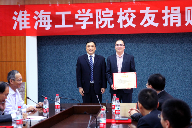 校长史金飞为徐州、宿迁、淮安、盐城校友会颁发荣誉证书