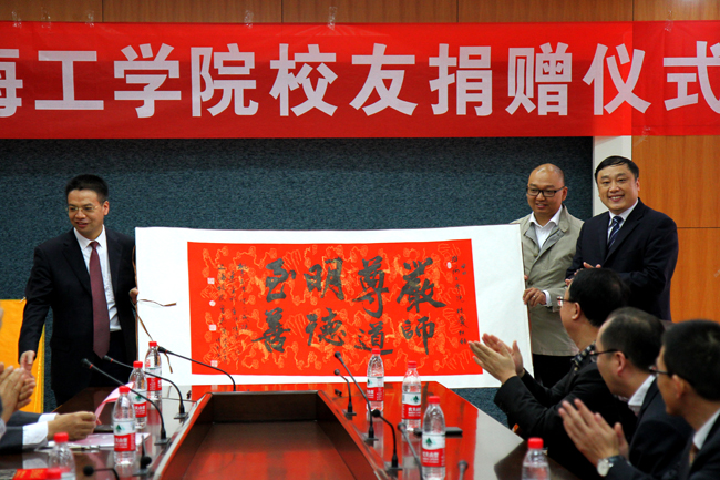 校长史金飞代表学校接受上海校友会捐赠的知名书法作品一幅