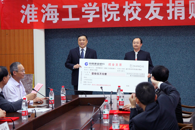 接下来,举行了校友捐赠助学基金签字仪式。无锡、常州校友会联合捐赠15万元,设立专项助学基金;苏州校友会会长沈兴华个人捐赠15万元,设立“三景刺绣”专项助学基金;南京校友会常务副会长刘勇个人捐赠15万元,设立“贝迪”专项助学基金;上海校友会常务副会长刘必新个人捐赠15万元,设立“欧宝利亚”助学基金;常州校友会副会长陆坚在承担部分校友会捐助之外,个人另外捐赠1万元基金。副校长刘永强代表学校与校友会负责人签署了捐赠协议。