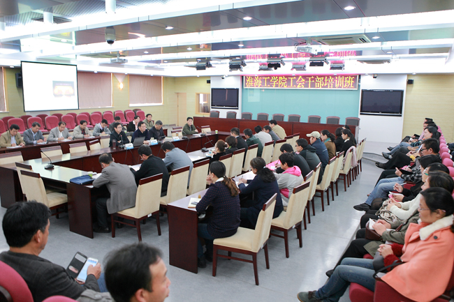 10月15下午,校工会在会议中心东海厅举办了工会干部培训报告会。连云港市教育工会主席周跃峰,校党委副书记、纪委书记史顺良出席了报告会,校工会委员、校女工委员、各分会主席及分会委员参加了培训,校学术期刊社的主编刘晓春、市教育工会主席周跃峰分别作专题报告。报告会由我校工会主席陈太彬主持。