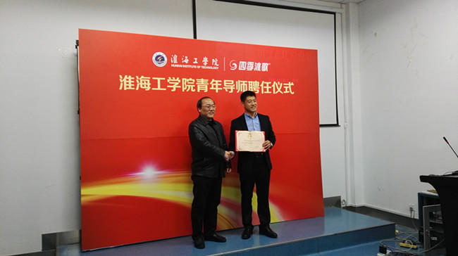 聘任仪式上,副校长王洪法为四季沐歌副总杨斌颁发了“淮海工学院青年大学生创业导师”聘书,并强调要强化校企合作、为在校大学生创业就业创造良好的条件。
