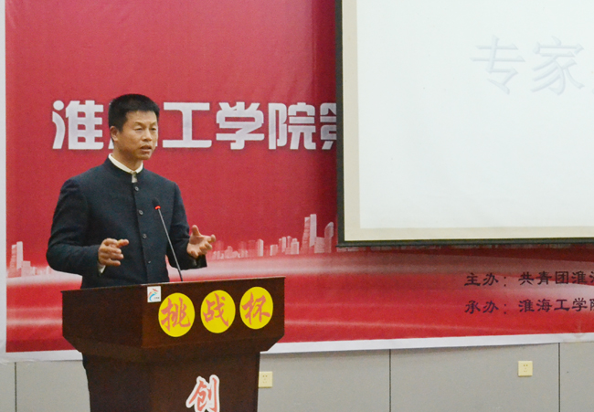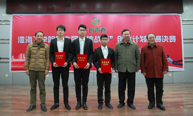 12月16日晚7点,由校团委主办、商学院承办的我校第六届 “挑战杯”大学生创业计划大赛决赛在本部艺术楼报告厅隆重举行,经过前期的集中培训、初赛、复赛环节,最终有四支团队参加了本次决赛答辩。校领导史金飞、宁晓明、舒小平、王洪法作为嘉宾出席并观看了比赛。日出东方太阳能股份有限公司董事长徐新建先生、恒丰银行南京城北支行副行长、高级经济师、高级职业经理人王康慕先生,教务处处长李纪明教授,学生处处长汤洪涛副教授,财务处处长吴价宝教授,商学院院长宣昌勇教授,淮海工学院创新创业研究所所长徐永其教授担任了本次公开答辩会的评委。商学院、团委有关负责人、相关学院党委副书记和辅导员、部分参赛团队的指导老师、创业团队成员参加了答辩会。