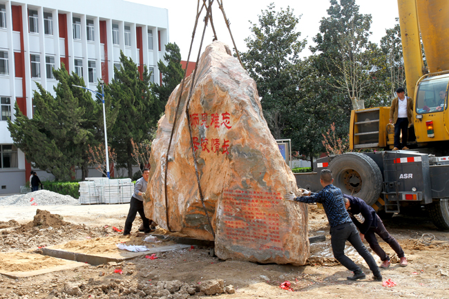 4月5日上午,由淮海工学院校友向母校捐赠的“校训石”在通灌校区顺利安装。校党委副书记、副校长宁晓明,校友代表王建强及分校区管委会领导现场指导安装。