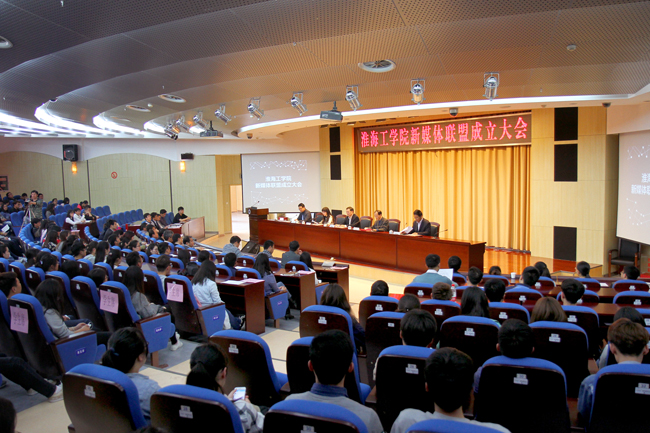 史顺良为新媒体联盟揭牌并讲话。他代表学校党政向淮海工学院新媒体联盟的成立表示祝贺。史顺良指出,当前,以微博、微信为代表的移动互联网新媒体平台迅猛发展,已成为广大师生获取和传播信息的主要渠道。截止今年3月份,学校近百个单位、学生组织开通了微博、微信等新媒体平台,新媒体的发展已经呈现“百花齐放”的良好态势。在看到我校新媒体平台蓬勃发展的同时,我们也要清醒地认识到学校新媒体发展存在的问题:各新媒体平台之间缺乏互动交流,大部分处于“单兵突击”的状态;学校新媒体环境相对复杂,内容良莠不齐,部分新媒体平台为吸引关注度,在信息发布过程中存在内容不真实、不恰当等问题,这些问题的出现都迫切需要进一步加强校内新媒体平台的学习培训、互动交流和规范管理。