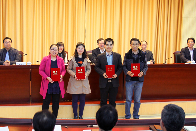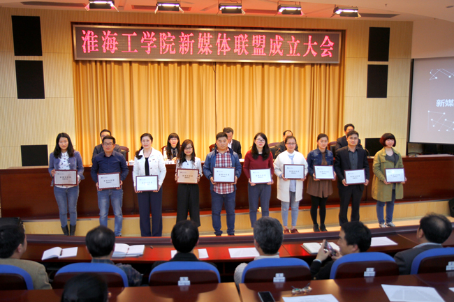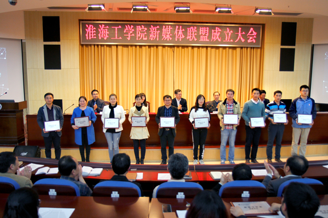 淮海工学院新媒体联盟聘请的校内外专家顾问领取聘书