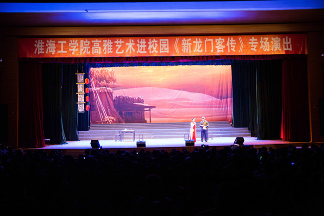 5月18日晚,由江苏省教育厅主办,江苏省演艺集团、淮海工学院承办的“江苏省高雅艺术进校园——《新龙门客传》话剧专场演出,在淮海工学院苍梧校区大礼堂成功举行,1000多名师生观看了这场精彩演出。