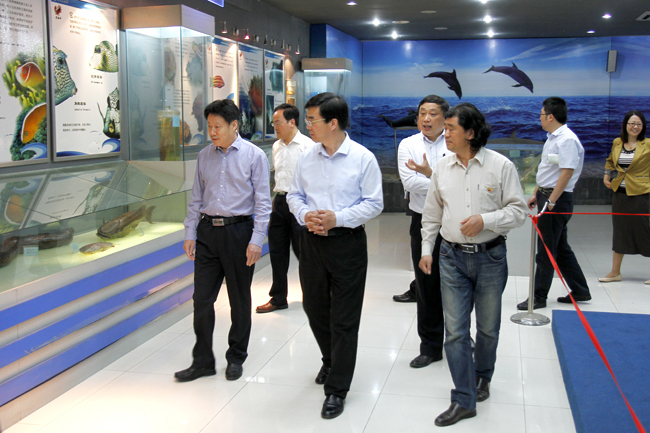 校党委书记赵炳起、校长史金飞陪同市委书记杨省世一行参观海洋馆
