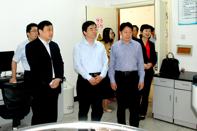 校党委书记赵炳起、校长史金飞陪同市委书记杨省世一行参观考察分析测试中心