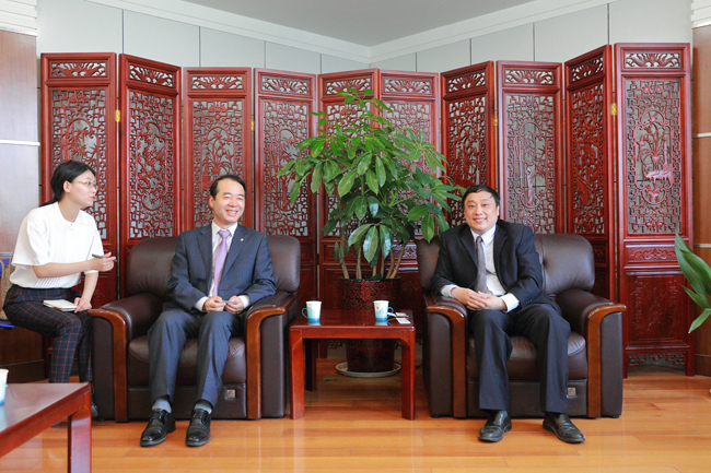 5月25日上午,韩国丽水市产业园区光阳支社社长文景真一行到我校访问交流。校长史金飞在行政楼二楼接待室会见了文景真社长一行,副校长刘永强、副校长许兴友陪同会见。