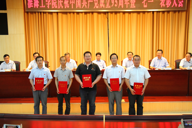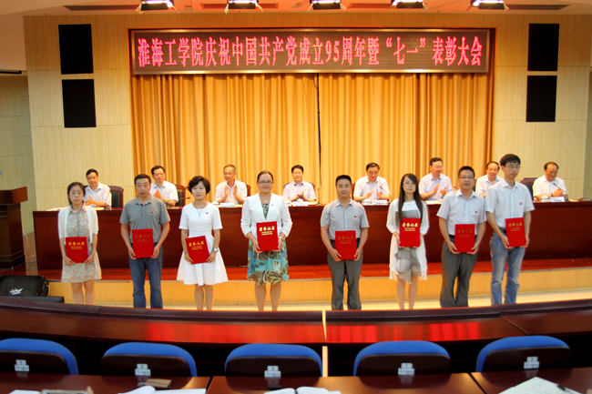 七一前夕,我校焦明连、董志国两位同志被表彰为“江苏省教育系统优秀共产党员”,尹德树同志被表彰为“江苏省教育系统优秀党务工作者”;徐启华同志被表彰为连云港市优秀共产党员,毛纪登同志被表彰为连云港市优秀党务工作者,商学院党委和土木工程学院党委被表彰为连云港市先进基层党组织。这些先进集体和优秀个人同时在会上受到表彰。