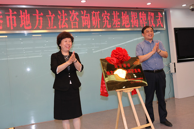 副主任于丽华代表市人大常委会对基地的建立表示热烈的祝贺!对淮海工学院在基地筹建过程中给予的大力支持表示衷心的感谢!于丽华指出,要迅速启动立法工作,在法学理论、立法队伍、立法规范、专业技术以及运作方式等方面都面临着许多新任务和新挑战,迫切需要得到高校和专家学者的大力支持。基地的建立就是要整合高校和地方拥有的优势资源,打造一流的地方立法咨询研究平台,努力在服务地方立法和高校学科建设方面有新的作为,实现互利双赢。于丽华提出要从三个方面共同做好立法咨询研究基地建设,即科学定位,积极推进新型立法智库建设;加强协调,促进基地建设稳步发展;积极实践,推动基地多出人才多出成果。最后,于丽华表示,市人大常委会将高度重视基地建设工作,将支持基地建设纳入人大地方立法常态化的工作内容,全力以赴支持基地建设,希望双方同心协力,紧密合作,使基地为建设“强富美高”的新港城作出应有的贡献。