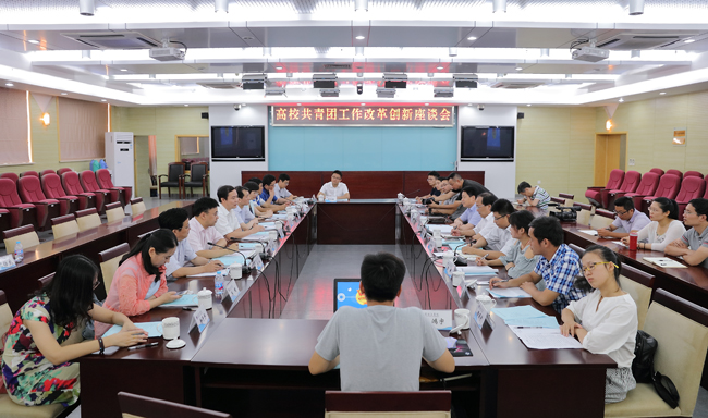 8月8日上午,团中央学校部部长杜汇良、团中央学校部中学处副处长朱昊炜一行到我校调研共青团工作。江苏团省委党组成员、省少先队总辅导员姜东,江苏团省委学校部部长陈文娟,副部长薛保刚及连云港市市委、教育工委、连云港团市委、徐州团市委的相关领导陪同调研。淮海工学院党委书记赵炳起、副校长王洪法、办公室、团委负责人及部分学生骨干参加了调研座谈会。座谈会由副校长王洪法主持。