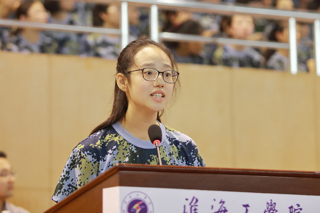 老生代表、校学生会主席陈星宇同学与新生分享了两年多来在淮海工学院学习与生活的收获,勉励学弟学妹们在未来的四年中认认真真学习,踏踏实实做人,不断夯实人生发展基础。