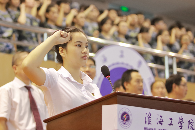 随后,全体新同学在校学生会副主席戴鸽同学的带领下进行了庄严的入学宣誓。