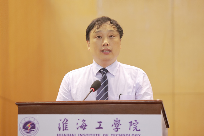 开学典礼在庄严的国歌声中拉开序幕。随后,校长史金飞发表了热情洋溢的讲话。史金飞代表淮海工学院两万名师生员工,向大家的到来表示热烈的欢迎,祝贺大家经过10多年寒窗苦读,顺利地来到了充满激情与活力的淮海工学院,开始人生新的征程。
