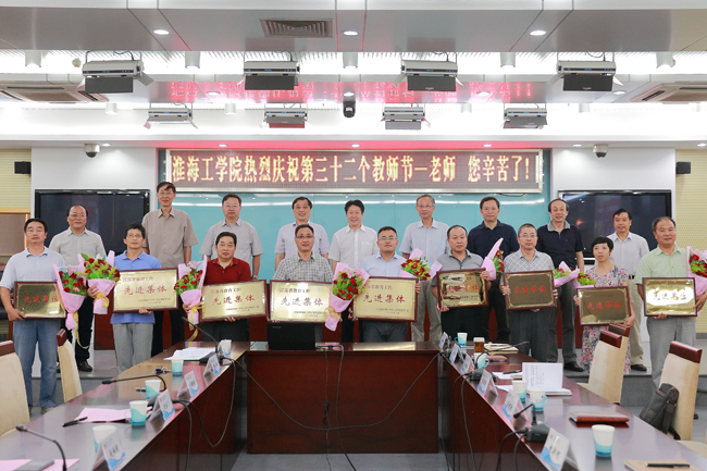 校领导为2016年度江苏省先进集体和淮海工学院“师德建设月”活动先进单位颁奖