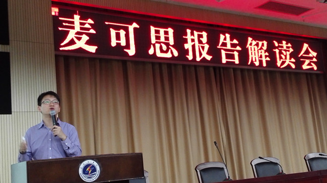 10月12日下午,我校在会议中心黄海厅召开了《淮海工学院应届毕业生培养质量评价报告》解读会,麦可思研究院研究员夏祎辰作了专题报告。校领导宁晓明、王洪法出席了会议,各二级学院党政领导、系主任、实验中心主任、专业负责人、辅导员和教学秘书以及教务处、教学质量管理处、学生处和团委全体人员听取了报告。会议由校党委副书记、副校长宁晓明主持。