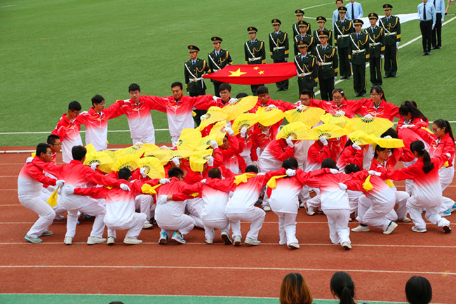 法学院、文学院入场方阵动感的音乐加上劲爆的舞蹈、艺术学院的扇形变换、应用技术学院用38个校徽图案组成一个奔跑的人……整齐划一的动作,富有创意的方阵造型,引得台上观众掌声、喝彩声、鼓声响成一片,经久不息。