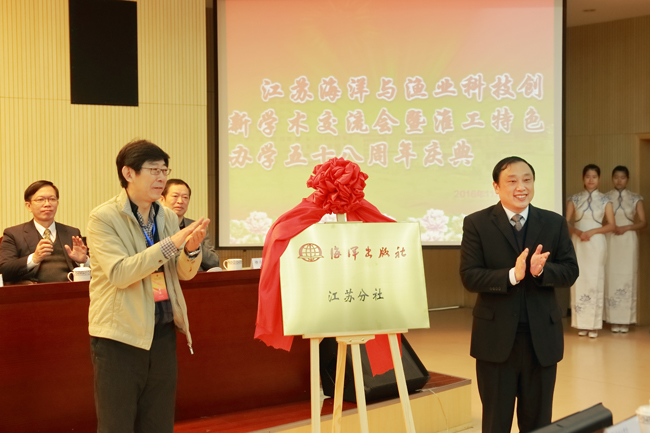 校长史金飞与海洋出版社总编刘勃为“海洋出版社江苏分社”揭牌