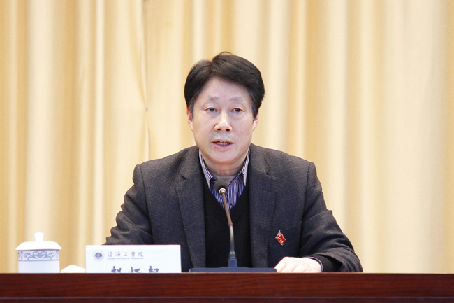 赵炳起强调,做好思想政治工作要顺应新形势,施展新作为。要在工作理念、标准、方法、制度等方面适应学校事业快速发展的需要,鼓舞士气、凝聚共识,切实增强思想政治工作的亲和力、感召力和向心力,切实打牢推进学校事业改革发展的思想基础。要构建“大思政”格局,发挥“大宣教”功能,用社会主义核心价值观引领师生思想,进一步探索加强和改进思想政治工作的新载体、新途径,紧紧抓住校园文化这个重要载体,提升校园文化品位,使新时期“淮工精神”深入人心。
