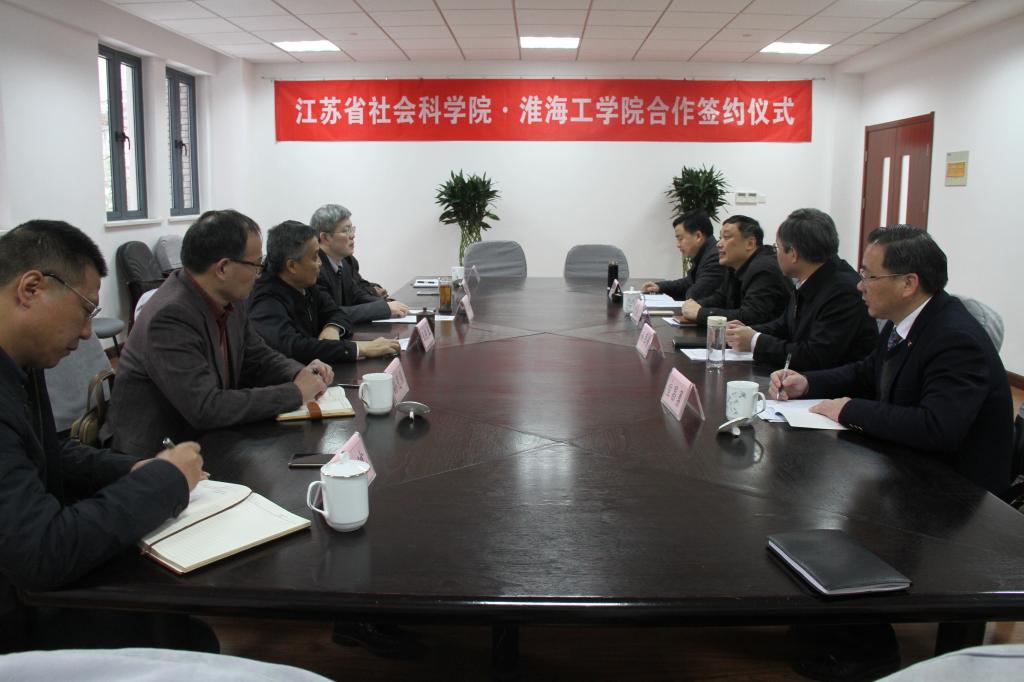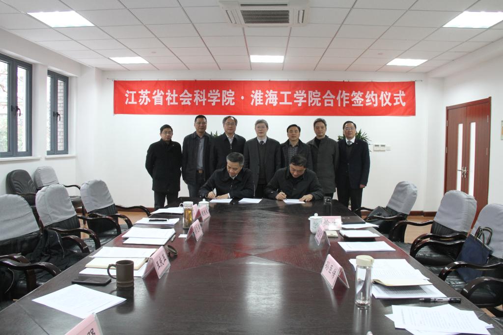 3月22日上午,我校与江苏省社会科学院、江苏省社会科学院连云港分院合作共建的江苏海洋发展研究院协议签字仪式在江苏省社会科学院举行。淮海工学院校长史金飞、江苏省社会科学院院长王庆五和江苏省社会科学院连云港分院院长孙巨传在协议书上签字。江苏省社会科学院副院长吴先满、科研处处长丁宏、经济所所长胡国良、财贸所所长孙克强和办公室主任范旭斌,我校财务处处长吴价宝和商学院院长宣昌勇参加了签字仪式。
