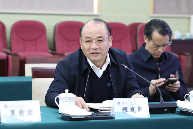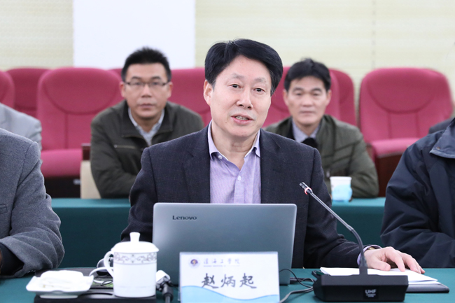 赵炳起对各位来宾的到来表示热烈欢迎。在共同观看了《淮海工学院建校三十周年暨办学五十七周年——三十而立》专题片后,赵炳起聚焦我校创建江苏海洋大学这一目标,从学校校区分布、主校区基本建设规划、涉海高校交流与合作、内涵建设、海洋学科平台建设、师资队伍建设等方面详细介绍了我校近年来的改革发展情况。赵炳起希望在推进省部共建、重大科技项目申报、重要奖项申报、办学水平提升以及涉海平台建设等方面,能够得到省海洋与渔业局的大力支持。他表示,我校将以“咬定青山不放松”的精神,把创建工作作为头等大事来抓,全力以赴做好江苏海洋大学创建工作。