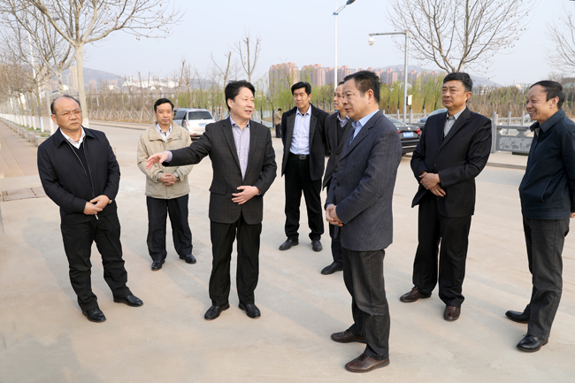 会前,赵炳起还陪同汤建鸣一行来到我校苍梧校区北侧,考察校园规划和建设情况。