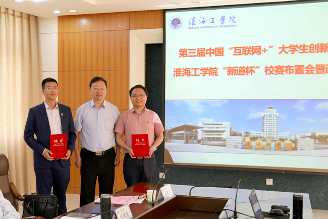 5月16日下午,第三届中国“互联网+”大学生创新创业大赛淮海工学院“新道杯”校内赛任务布置会暨政策解读会成功召开。校党委副书记、副校长宁晓明,新道科技股份有限公司、教务处、团委、学生处、科技处、大学科技园管委会负责人,各教学单位、相关部门负责同志及部分参赛师生代表参加了会议。会议由教务处处长李纪明主持。