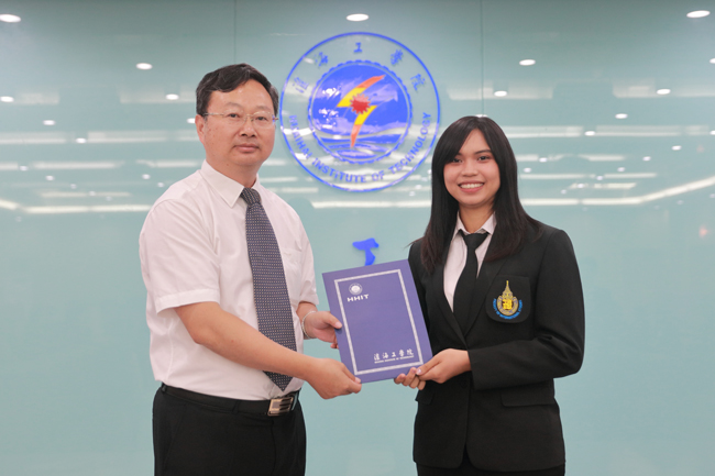留学生代表CHUTIKAN ANURUKZUP(沈静婷)同学用较为流利的中文为大家讲述了在淮海工学院学习和生活体会。对学校的周到安排、老师们耐心的教导、志愿者们的热情帮助表示了由衷的感谢,并表达了在临别之际对大家的不舍之情。