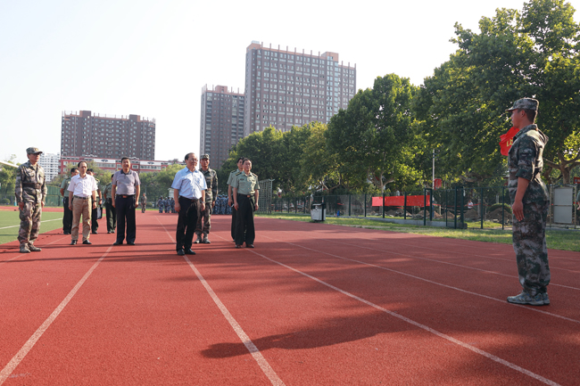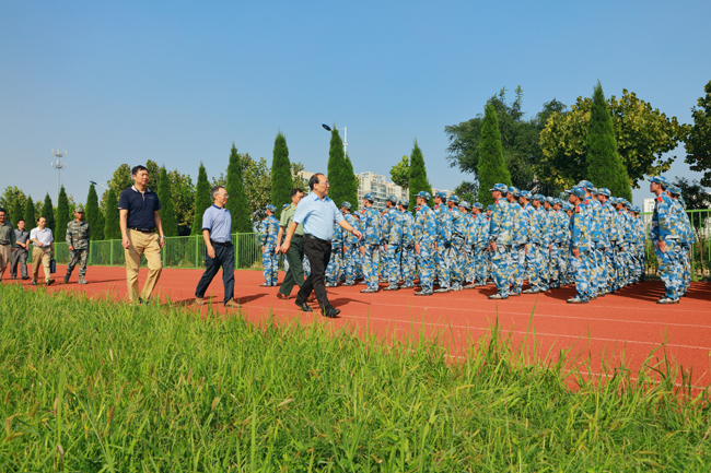 阳光明媚,秋风送爽,我校2017级大学生军训正在如火如荼地进行中。9月14日上午,校军训工作领导小组组长、副校长王洪法,在学生处、武装部相关负责人和承训部队首长的陪同下视察了我校三个校区的新生军训工作。