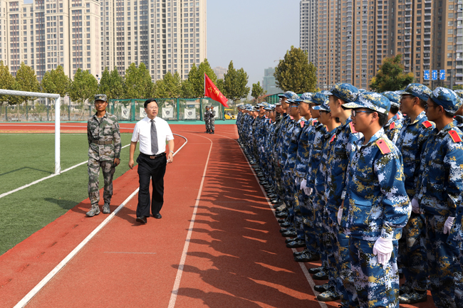 军训汇报在庄严的国歌声中拉开序幕。校长宁晓明在军训团参谋长孙翔的陪同下,依次检阅了各个方队。
