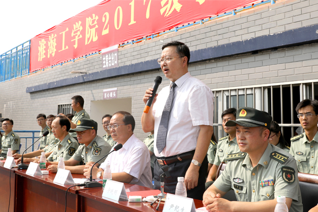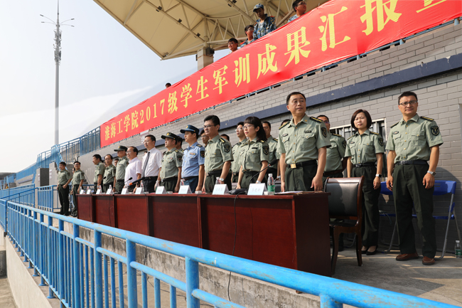 9月22日上午,我校2017级新生军训成果汇报暨总结表彰大会在苍梧校区主田径场隆重举行。校长宁晓明,副校长、军训工作领导小组组长王洪法,连云港警备区动员处处长尹纪生上校,新浦区人民武装部政委程福明上校,中国人民解放军31609部队海防一营营长皮从军少校,以及淮海工学院2017级学生军训工作领导小组、军训团全体领导,各学院及相关职能部门负责人出席大会。大会由校武装部部长、军训团团长马建新主持。